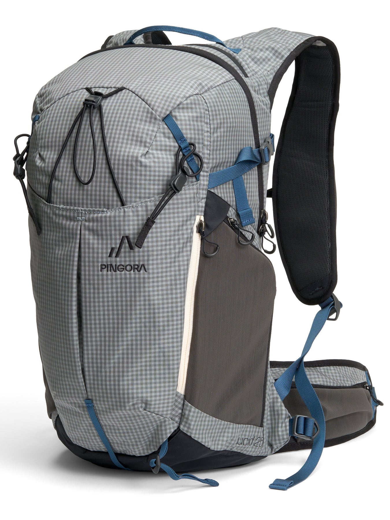 the Lucid 25L offers 25 liters of storage, making it ideal for extended treks off the grid. While it’s the largest pack in our Lucid series, it maintains the comfortable carry and lightweight design that defines the line. Its running pack style harness ensures the pack stays close to your body and moves with you, providing exceptional stability on the go.